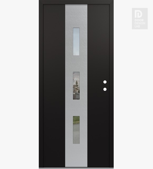 Modern Steel Front Door DIAMOND A7 36" X 80" BLACK/BLACK CLEAR GLASS PANEL STAINLESS STEEL RHI