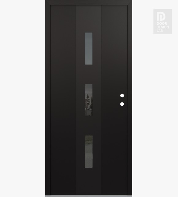 Modern Steel Front Door DIAMOND A7 36" X 80" BLACK/BLACK MIRRORED GLASS PANEL BLACK RHI