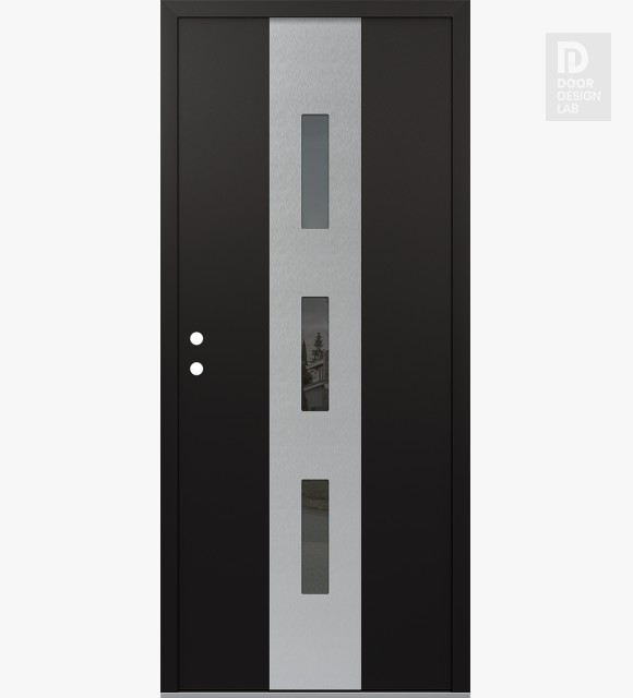 Modern Steel Front Door DIAMOND A7 36" X 80" BLACK/BLACK MIRRORED GLASS PANEL STAINLESS STEEL LHI