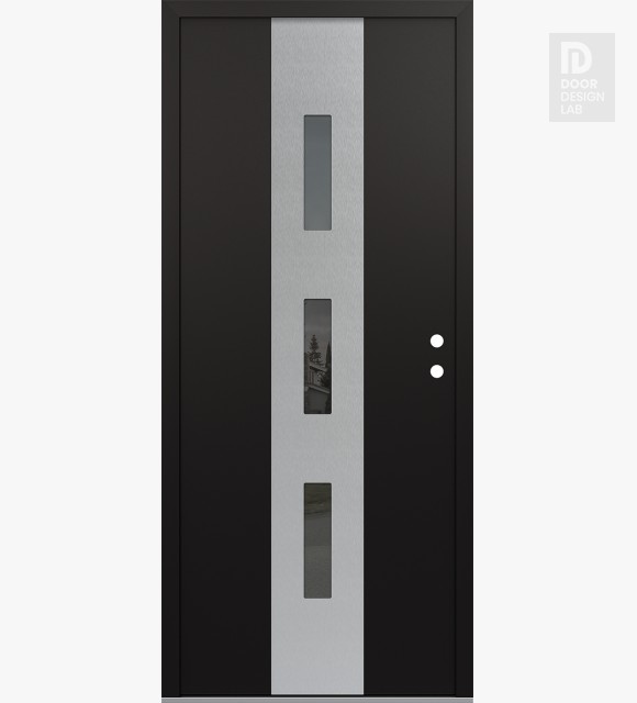 Modern Steel Front Door DIAMOND A7 36" X 80" BLACK/BLACK MIRRORED GLASS PANEL STAINLESS STEEL RHI
