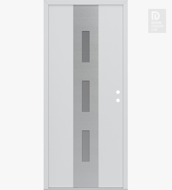 Modern Steel Front Door DIAMOND A7 36" X 80" BLACK/WHITE FROSTED GLASS PANEL STAINLESS STEEL RHI