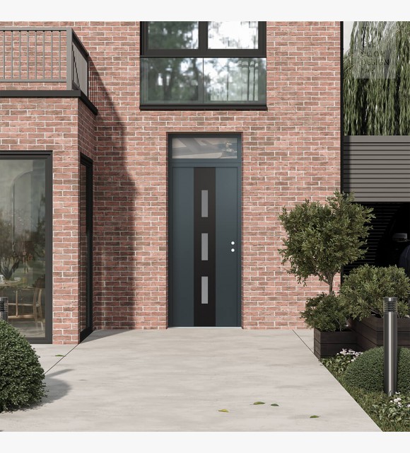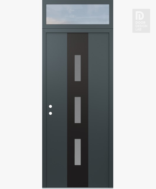 Modern Steel Front Door DIAMOND A7 36" X 96" ANTHRACITE/ANTHRACITE FROSTED GLASS PANEL BLACK LHI WITH TRANSOM CLEAR GLASS