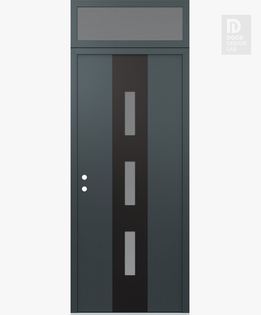 Modern Steel Front Door DIAMOND A7 36" X 96" ANTHRACITE/ANTHRACITE FROSTED GLASS PANEL BLACK LHI WITH TRANSOM FROSTED GLASS