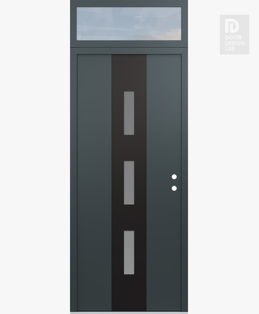 Modern Steel Front Door DIAMOND A7 36" X 96" ANTHRACITE/ANTHRACITE FROSTED GLASS PANEL BLACK RHI WITH TRANSOM CLEAR GLASS
