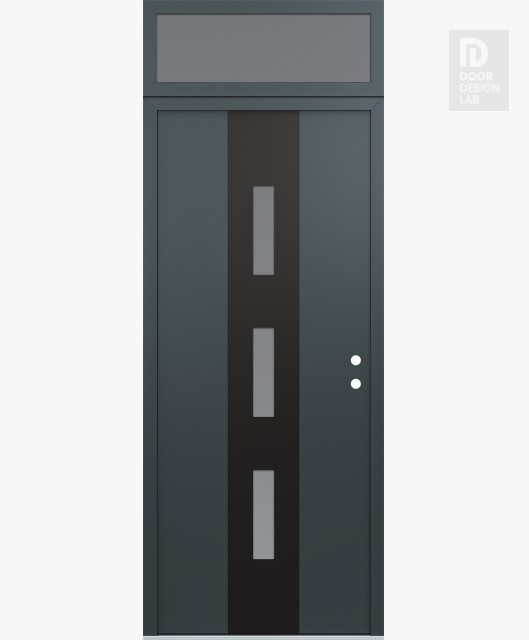 Modern Steel Front Door DIAMOND A7 36" X 96" ANTHRACITE/ANTHRACITE FROSTED GLASS PANEL BLACK RHI WITH TRANSOM FROSTED GLASS