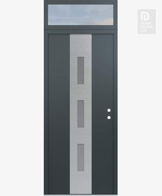 Modern Steel Front Door DIAMOND A7 36" X 96" ANTHRACITE/ANTHRACITE FROSTED GLASS PANEL STAINLESS STEEL RHI WITH TRANSOM CLEAR GLASS