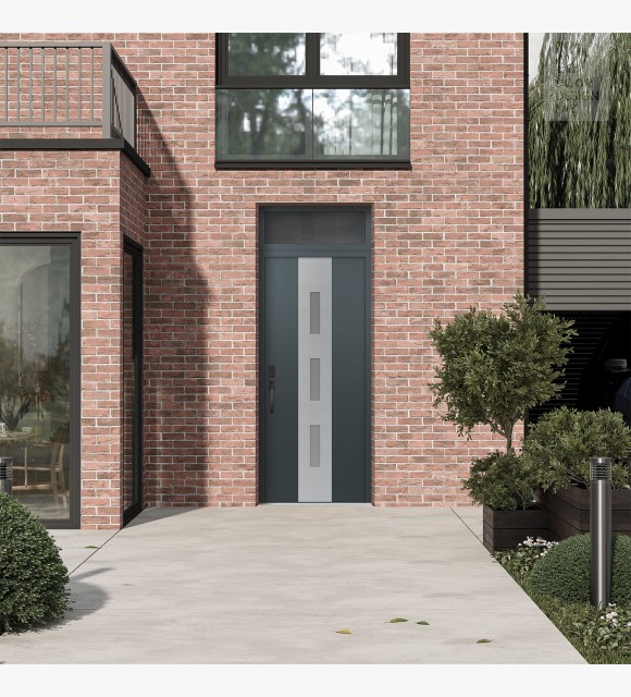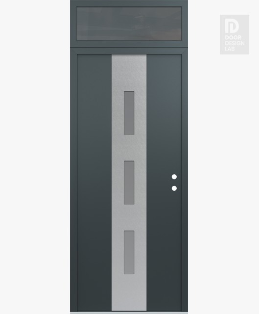 Modern Steel Front Door DIAMOND A7 36" X 96" ANTHRACITE/ANTHRACITE FROSTED GLASS PANEL STAINLESS STEEL RHI WITH TRANSOM MIRRORED GLASS
