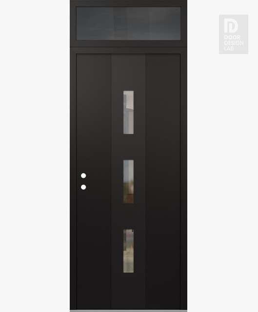 Modern Steel Front Door DIAMOND A7 36" X 96" BLACK/BLACK CLEAR GLASS PANEL BLACK RHI WITH TRANSOM MIRRORED GLASS