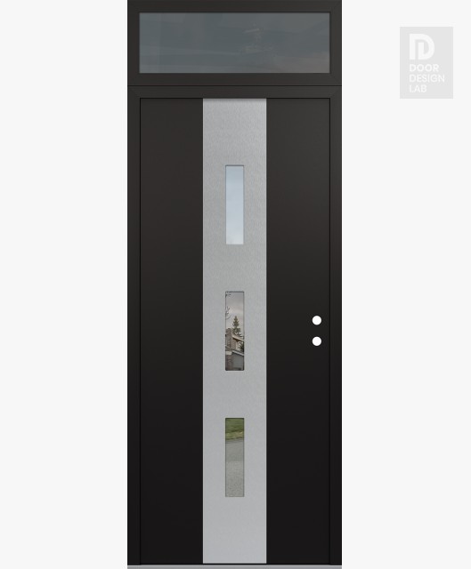 Modern Steel Front Door DIAMOND A7 36" X 96" BLACK/BLACK CLEAR GLASS PANEL STAINLESS STEEL RHI WITH TRANSOM MIRRORED GLASS