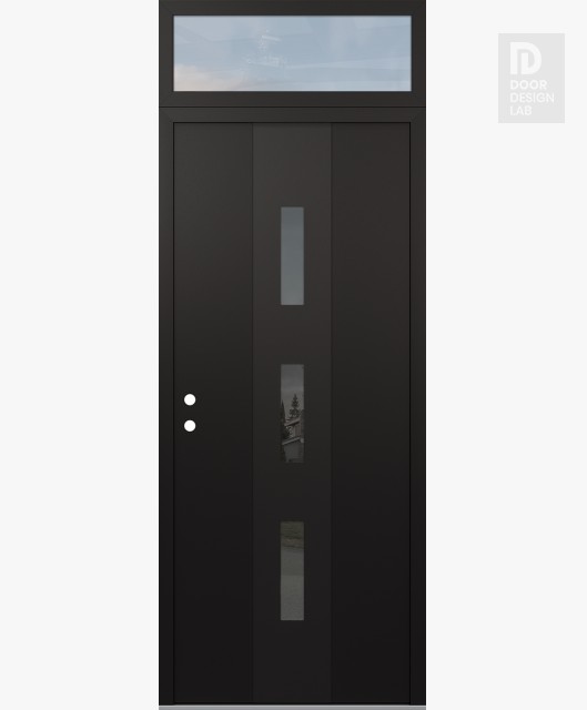 Modern Steel Front Door DIAMOND A7 36" X 96" BLACK/BLACK MIRRORED GLASS PANEL BLACK LHI WITH TRANSOM CLEAR GLASS