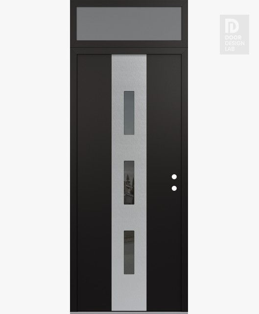Modern Steel Front Door DIAMOND A7 36" X 96" BLACK/BLACK MIRRORED GLASS PANEL STAINLESS STEEL RHI WITH TRANSOM FROSTED GLASS