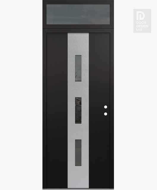 Modern Steel Front Door DIAMOND A7 36" X 96" BLACK/BLACK MIRRORED GLASS PANEL STAINLESS STEEL RHI WITH TRANSOM MIRRORED GLASS