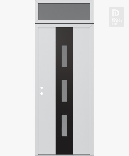 Modern Steel Front Door DIAMOND A7 36" X 96" BLACK/WHITE FROSTED GLASS PANEL BLACK LHI WITH TRANSOM FROSTED GLASS
