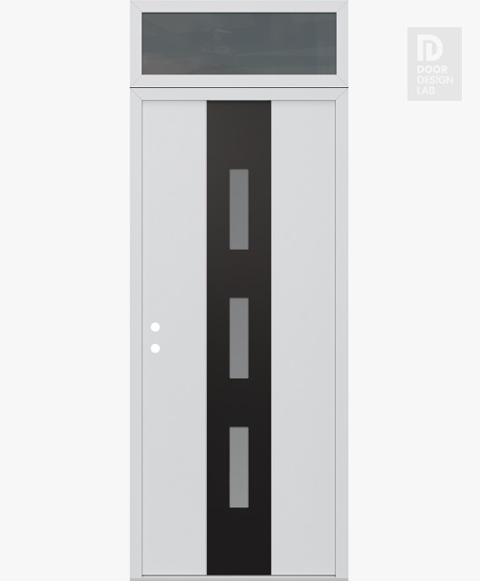 Modern Steel Front Door DIAMOND A7 36" X 96" BLACK/WHITE FROSTED GLASS PANEL BLACK LHI WITH TRANSOM MIRRORED GLASS