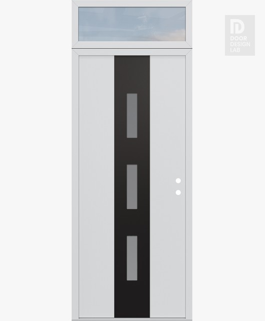 Modern Steel Front Door DIAMOND A7 36" X 96" BLACK/WHITE FROSTED GLASS PANEL BLACK RHI WITH TRANSOM CLEAR GLASS