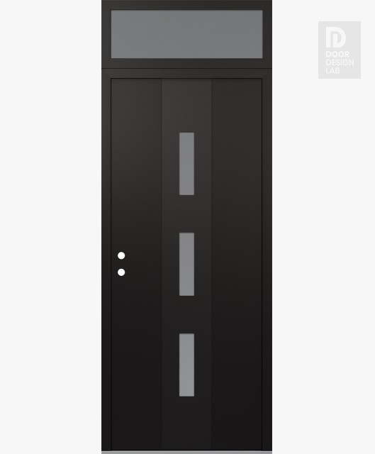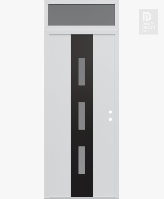 Modern Steel Front Door DIAMOND A7 36" X 96" BLACK/WHITE FROSTED GLASS PANEL BLACK RHI WITH TRANSOM FROSTED GLASS