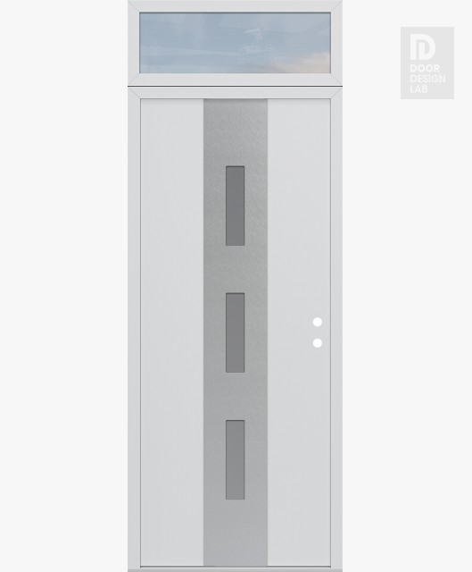 Modern Steel Front Door DIAMOND A7 36" X 96" BLACK/WHITE FROSTED GLASS PANEL STAINLESS STEEL RHI WITH TRANSOM CLEAR GLASS