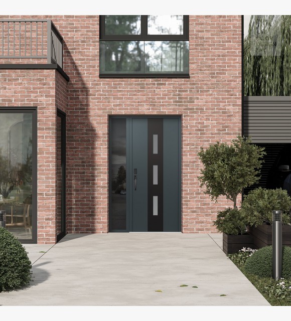 The double-chamber glazing combined with polystyrene insulation reduces heat loss by 40-50% compared to conventional exterior doors: