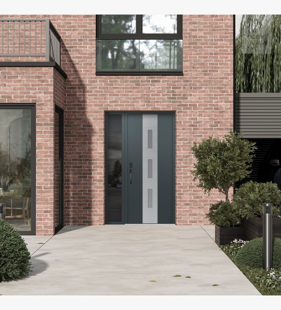 The double-chamber glazing combined with polystyrene insulation reduces heat loss by 40-50% compared to conventional exterior doors: