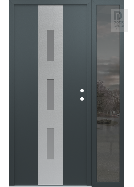 Modern Steel Front Door DIAMOND A7 48" X 80" ANTHRACITE/ANTHRACITE FROSTED GLASS PANEL STAINLESS STEEL RHI WITH SIDELITE MIRRORED GLASS