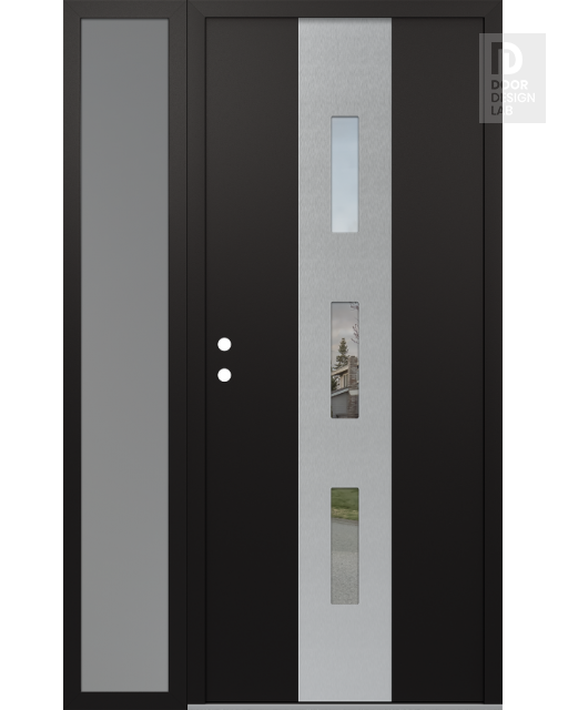 Modern Steel Front Door DIAMOND A7 48" X 80" BLACK/BLACK CLEAR GLASS PANEL STAINLESS STEEL LHI WITH SIDELITE FROSTED GLASS