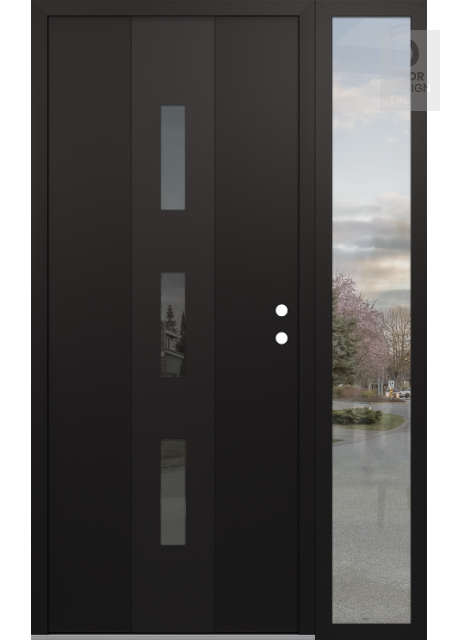Modern Steel Front Door DIAMOND A7 48" X 80" BLACK/BLACK MIRRORED GLASS PANEL BLACK RHI WITH SIDELITE CLEAR GLASS