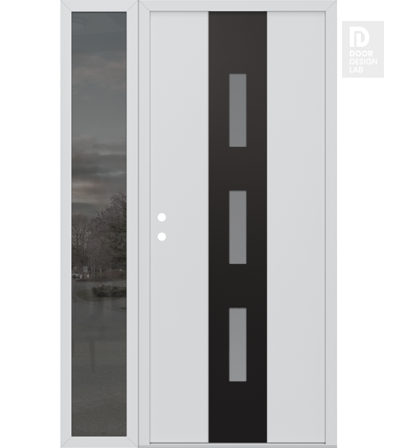 Modern Steel Front Door DIAMOND A7 48" X 80" BLACK/WHITE FROSTED GLASS PANEL BLACK LHI WITH SIDELITE MIRRORED GLASS