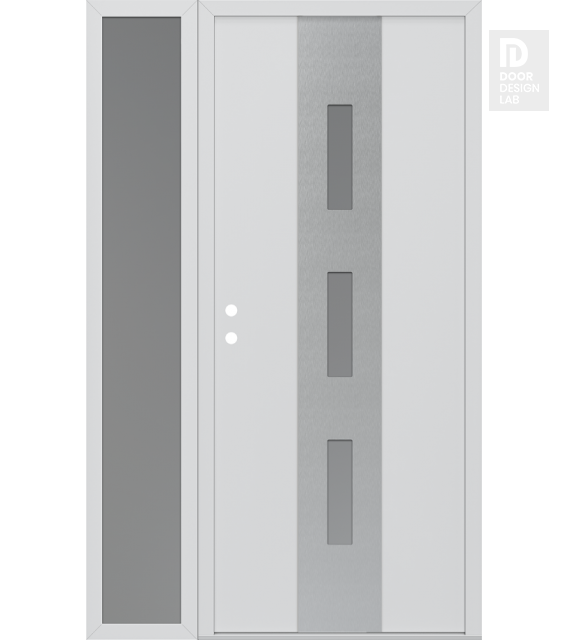 Modern Steel Front Door DIAMOND A7 48" X 80" BLACK/WHITE FROSTED GLASS PANEL STAINLESS STEEL LHI WITH SIDELITE FROSTED GLASS