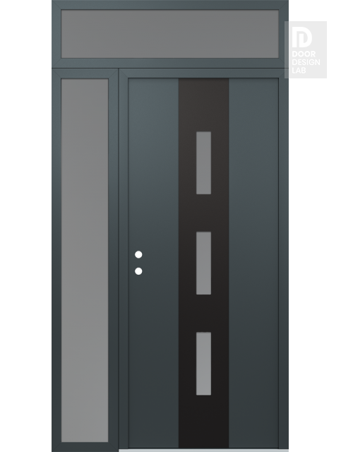 Modern Steel Front Door DIAMOND A7 48" X 96" ANTHRACITE/ANTHRACITE FROSTED GLASS PANEL BLACK LHI WITH SIDELITE AND TRANSOM FROSTED GLASS
