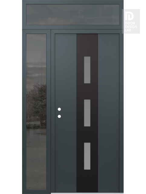 Modern Steel Front Door DIAMOND A7 48" X 96" ANTHRACITE/ANTHRACITE FROSTED GLASS PANEL BLACK LHI WITH SIDELITE AND TRANSOM MIRRORED GLASS