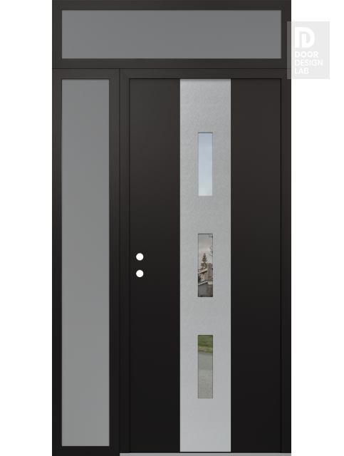 Modern Steel Front Door DIAMOND A7 48" X 96" BLACK/BLACK CLEAR GLASS PANEL STAINLESS STEEL LHI WITH SIDELITE AND TRANSOM FROSTED GLASS