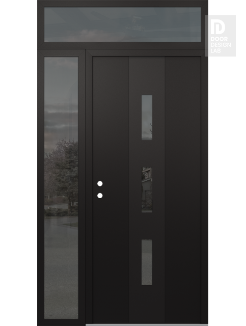 Modern Steel Front Door DIAMOND A7 48" X 96" BLACK/BLACK MIRRORED GLASS PANEL BLACK LHI WITH SIDELITE AND TRANSOM MIRRORED GLASS