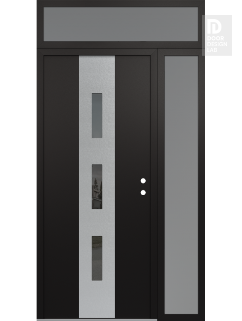 Modern Steel Front Door DIAMOND A7 48" X 96" BLACK/BLACK MIRRORED GLASS PANEL STAINLESS STEEL RHI WITH SIDELITE AND TRANSOM FROSTED GLASS