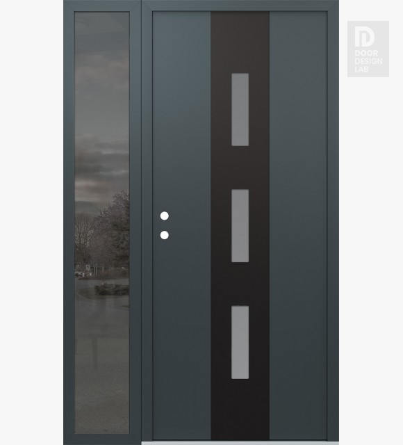 Modern Steel Front Door DIAMOND A7 50" X 80" ANTHRACITE/ANTHRACITE FROSTED GLASS PANEL BLACK LHI WITH SIDELITE MIRRORED GLASS