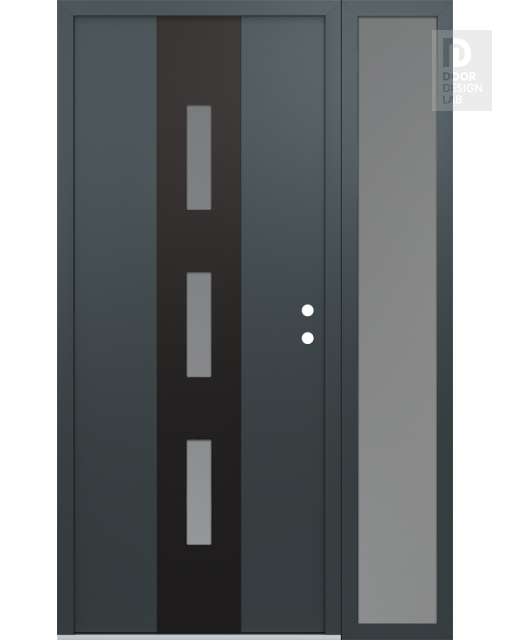 Modern Steel Front Door DIAMOND A7 50" X 80" ANTHRACITE/ANTHRACITE FROSTED GLASS PANEL BLACK RHI WITH SIDELITE FROSTED GLASS