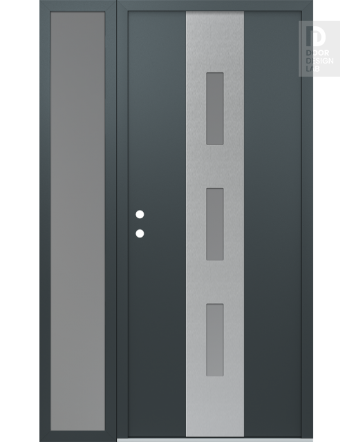 Modern Steel Front Door DIAMOND A7 50" X 80" ANTHRACITE/ANTHRACITE FROSTED GLASS PANEL STAINLESS STEEL LHI WITH SIDELITE FROSTED GLASS