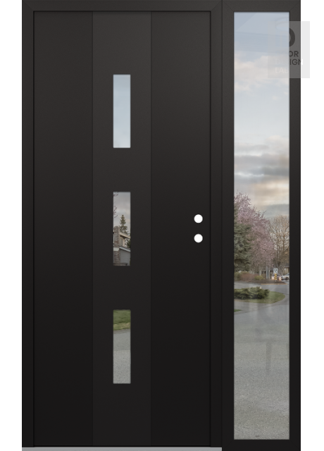 Modern Steel Front Door DIAMOND A7 50" X 80" BLACK/BLACK CLEAR GLASS PANEL BLACK RHI WITH SIDELITE CLEAR GLASS