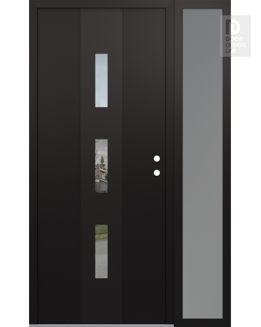 Modern Steel Front Door DIAMOND A7 50" X 80" BLACK/BLACK CLEAR GLASS PANEL BLACK RHI WITH SIDELITE FROSTED GLASS