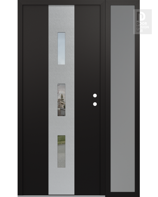 Modern Steel Front Door DIAMOND A7 50" X 80" BLACK/BLACK CLEAR GLASS PANEL STAINLESS STEEL RHI WITH SIDELITE FROSTED GLASS