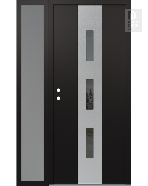 Modern Steel Front Door DIAMOND A7 50" X 80" BLACK/BLACK MIRRORED GLASS PANEL STAINLESS STEEL LHI WITH SIDELITE FROSTED GLASS