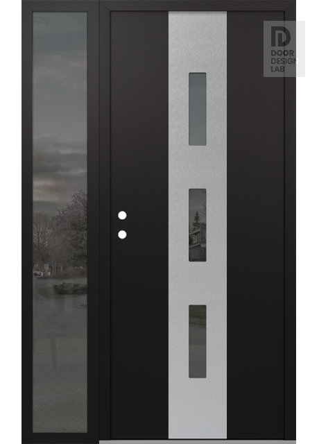 Modern Steel Front Door DIAMOND A7 50" X 80" BLACK/BLACK MIRRORED GLASS PANEL STAINLESS STEEL LHI WITH SIDELITE MIRRORED GLASS