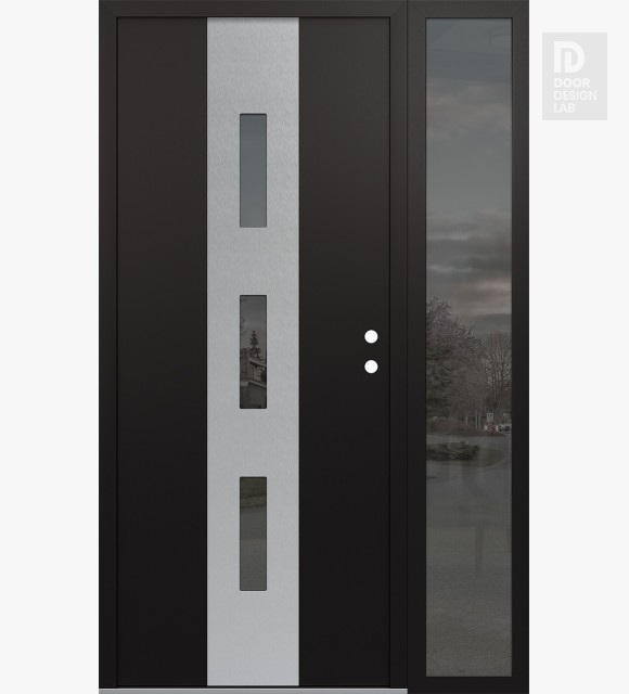 Modern Steel Front Door DIAMOND A7 50" X 80" BLACK/BLACK MIRRORED GLASS PANEL STAINLESS STEEL RHI WITH SIDELITE MIRRORED GLASS
