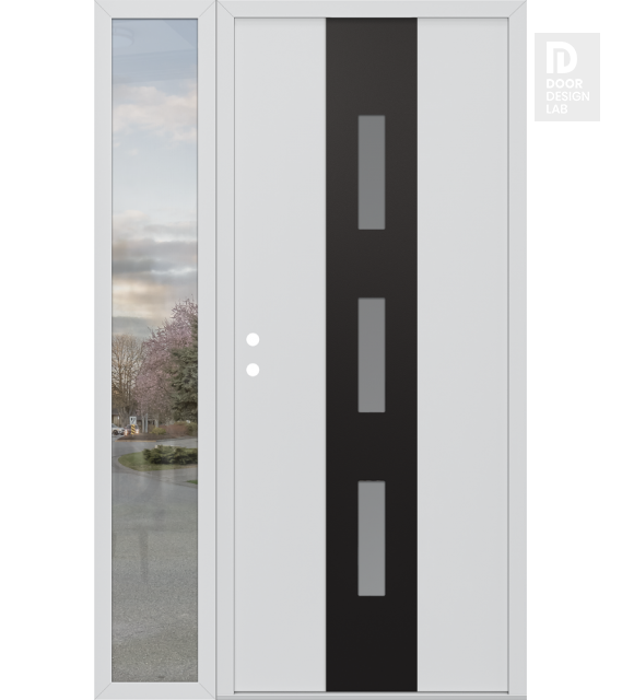Modern Steel Front Door DIAMOND A7 50" X 80" BLACK/WHITE FROSTED GLASS PANEL BLACK LHI WITH SIDELITE CLEAR GLASS