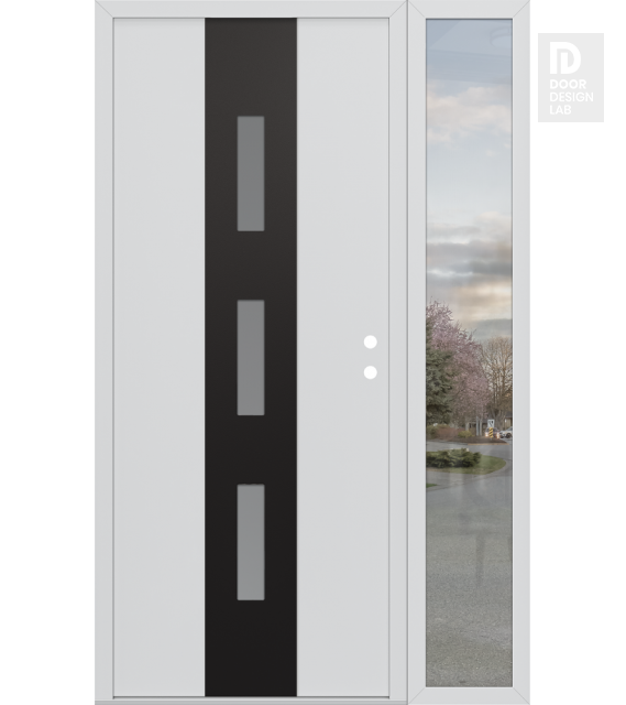 Modern Steel Front Door DIAMOND A7 50" X 80" BLACK/WHITE FROSTED GLASS PANEL BLACK RHI WITH SIDELITE CLEAR GLASS