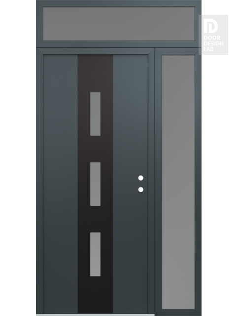 Modern Steel Front Door DIAMOND A7 50" X 96" ANTHRACITE/ANTHRACITE FROSTED GLASS PANEL BLACK RHI WITH SIDELITE AND TRANSOM FROSTED GLASS