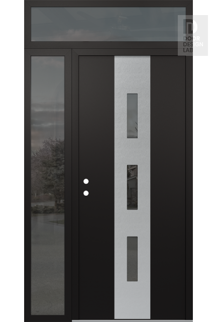 Modern Steel Front Door DIAMOND A7 50" X 96" BLACK/BLACK MIRRORED GLASS PANEL STAINLESS STEEL LHI WITH SIDELITE AND TRANSOM MIRRORED GLASS
