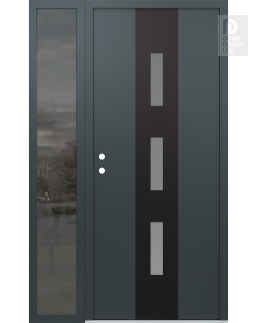 Modern Steel Front Door DIAMOND A7 52" X 80" ANTHRACITE/ANTHRACITE FROSTED GLASS PANEL BLACK LHI WITH SIDELITE MIRRORED GLASS