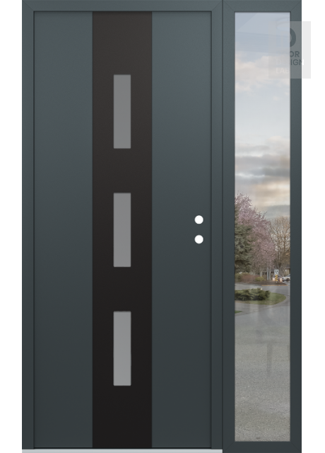 Modern Steel Front Door DIAMOND A7 52" X 80" ANTHRACITE/ANTHRACITE FROSTED GLASS PANEL BLACK RHI WITH SIDELITE CLEAR GLASS