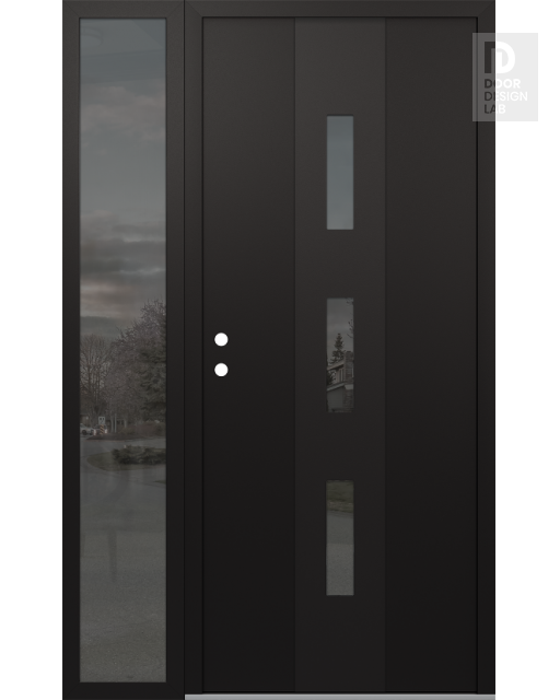 Modern Steel Front Door DIAMOND A7 52" X 80" BLACK/BLACK MIRRORED GLASS PANEL BLACK LHI WITH SIDELITE MIRRORED GLASS