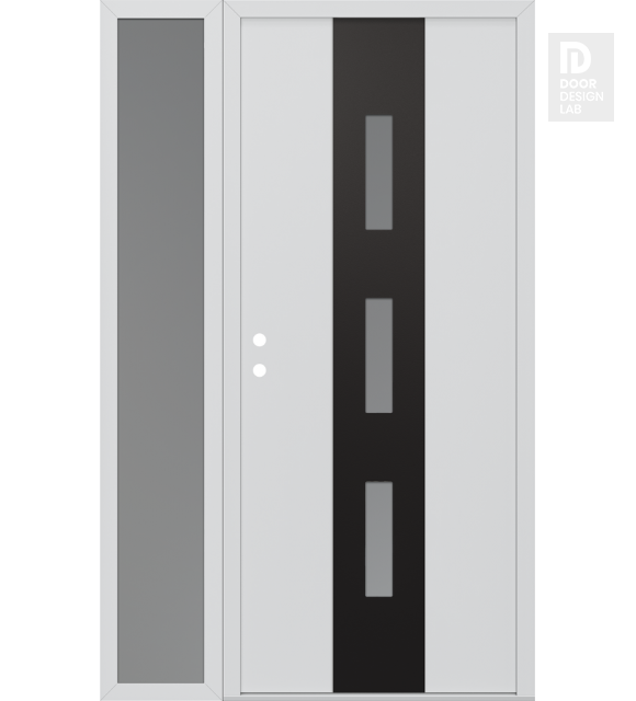Modern Steel Front Door DIAMOND A7 52" X 80" BLACK/WHITE FROSTED GLASS PANEL BLACK LHI WITH SIDELITE FROSTED GLASS